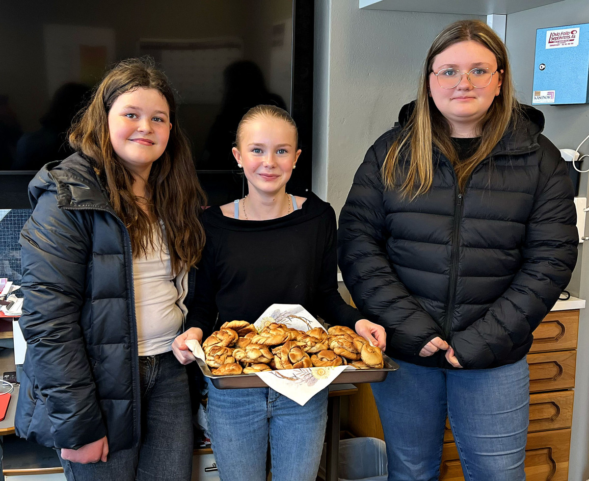 PS: Det kunne ikke passet bedre da tre 8.klassinger, Astri, Maiken og Amanda fra Klokkerjordet skole kom innom brannstasjon i Sande med nybakte kanelsnurrer mandag ettermiddag. Skoleoppgaven de skulle løse med besøket var «Innsats for andre».