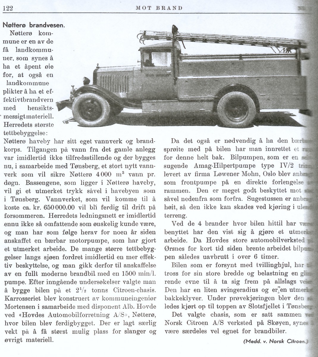 Sannsynligvis den første brannbilen i Skandinavia med frontpumpe