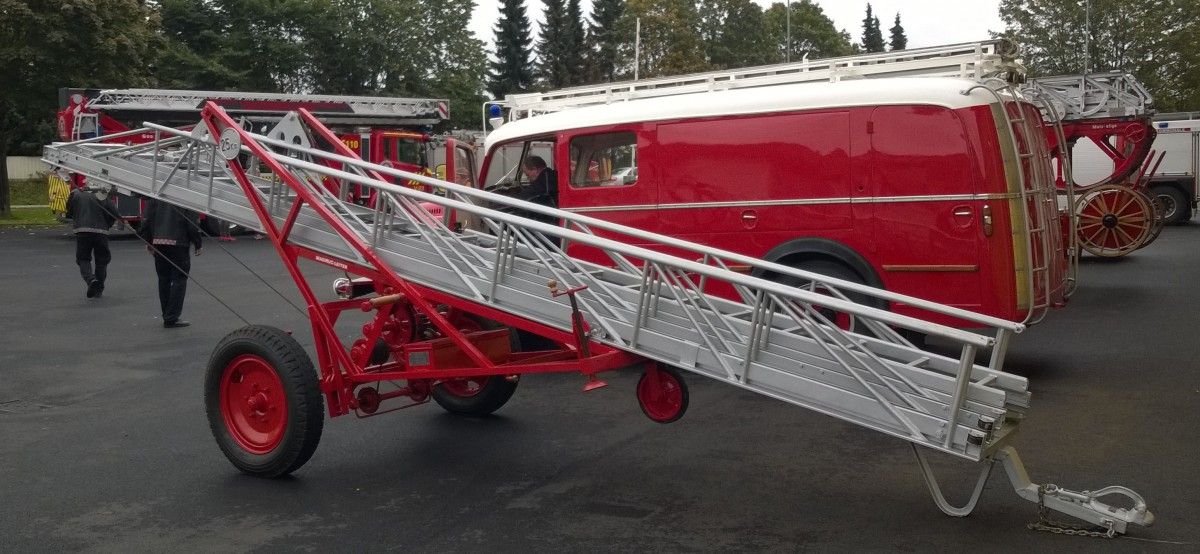 Magirus tilhengerstige 1954-modell, brukt i Holmestrand brannvesen