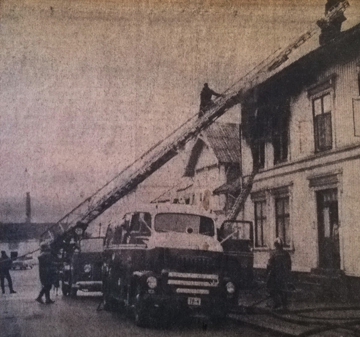 Fra Enevold Hansens memoarer: På forsommeren ble det endelig besluttet å gå til anskaffelse av høitrykksvogn. Etter konferanse med varabrannsjef Hamborgstrøm, Oslo, ble det så bestilt høitrykkspumpe med utstyr i Amerika, for montering her hjemme. Samtidig blir bestilt et Ford chassis, men ved ankomsten viste den seg å være for stor for garasjen og utkjøringen. Den hadde for liten svingradius. Veivesenet overtok så denne, og en Internasjonal av bulldogtypen ble bestilt. |